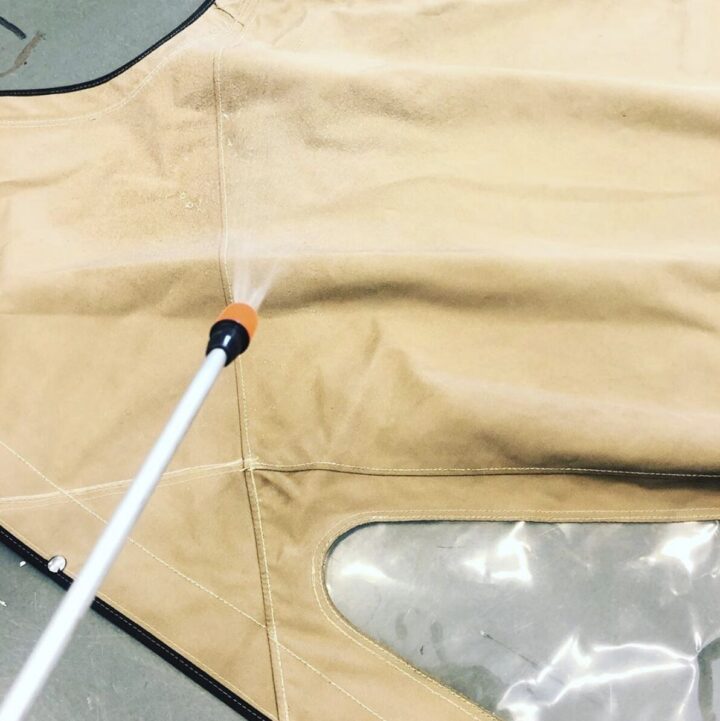Impregneren is heel belangrijk! Maar nog belangrijker, u beschermt het doek ook extra tegen schimmel, groene aanslag en al het andere vuil. Zo verlengt u de levensduur en geniet u langer van een mooie schone bootkap, tent of cabriokap. Ik beschik over een een zeer sterk impregneermiddel voor uw voortent, bootkap of cabriodak.